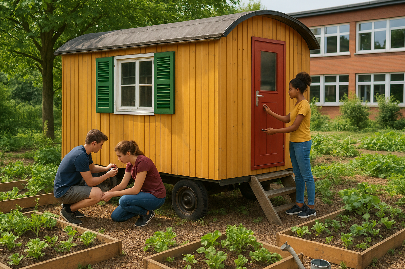 Unser Projekt beinhaltet den Ausbau eines Bauwagens durch unsere Lernenden für den Schulgarten. Der Bauwagen soll dazu dienen, Schülerinnen und Schülern einen Wohlfühlort zu geben, an und in dem sie eigene Projekte planen und umsetzen können. Zusätzlich soll der eigene Ausbau ihnen Selbstwirksamkeit erlebbar und Schule zu einem Ort des Handelns und Schaffen machen.