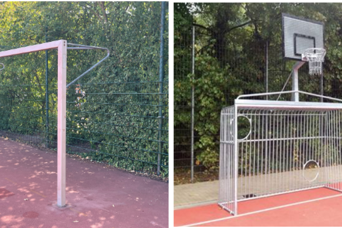 Der sogenannte Rote Platz ist für viele Kinder unserer Grundschule ein ganz besonders wichtiger Ort! Hier wird in den Pausen Fußball gespielt, für die Radfahrprüfung geübt, es werden gemeinsam Tänze getanzt, Fangen gespielt und der ein oder andere prägende Diskurs geführt - aktuell vor allem über "drinne" oder "nicht drinne", denn das in die Jahre gekommene Fussballtor hat gar kein Netz mehr! Wir sind davon überzeugt, dass Bewegung für Grundschulkinder essenziell ist, um konzentriert lernen und aufmerksam dem Unterricht folgen zu können. Erfolgserlebnisse auf dem Sportplatz können Kraft geben und Zuversicht, einen Ausgleich schaffen, der Kinder wiederum leichter lernen lässt. Der Förderverein der Grundschule Burgholzhausen ist bemüht, die Kräfte der Schulgemeinde zu vereinen und Unterstützer zu gewinnen, um verschiedenste Projekte realisieren zu können, die den rund 200 Schülerinnen und Schülern zwischen 6 und 10 Jahren eine schöne, erfolgreiche und abwechslungsreiche Grundschulzeit bereitet. Stets darauf bedacht, gleiche Chancen für alle zu schaffen und das Miteinander der Gesellschaft zu stärken! Die Aufwertung des Herzens des Pausenhofs mit einem kombinierten Fußball-Basketball-Tor wäre für die Kinder ein ganz besonderes Highlight. Unser Budget gibt die hierfür nötigen Mittel jedoch leider nicht her. Ihre Unterstützung würde mit Sicherheit für Lobeslieder und freudigen Sprachgesang auf dem Pausenhof sorgen - außerdem für fairen Wettkampf und im Team erbrachte Erfolge, gezählt in Toren bzw. Körben!