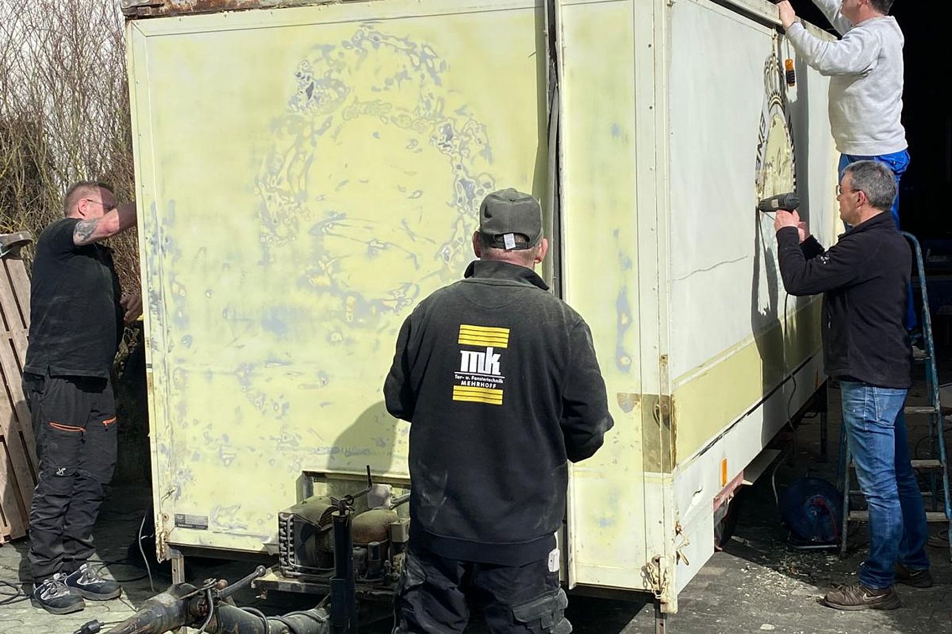 Unser 100-Einwohner-Dorf lebt durch den Schützenverein. Um diesen sozialen Mittelpunkt zu erhalten, haben wir einen bewährten Getränkeverkaufswagen (Baujahr 1982) angeschafft, den wir nun in kompletter Eigenregie sanieren. Da unser Ort keine Gaststätte mehr hat, ist dieser Wagen unsere „mobile Dorfmitte“.
