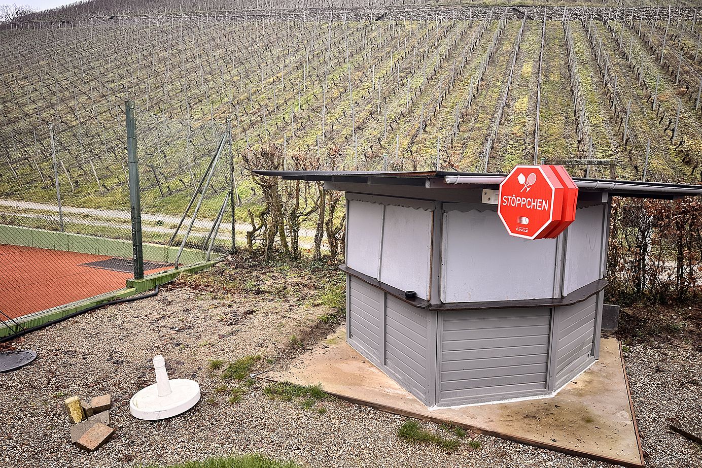 Letztes Jahr haben wir einen alten Weinstand geschenkt bekommen und mit viel Arbeit und Liebe wieder hergerichtet. Eigentlich sollte er in die Entsorgung. Liebevoll hat der Weinstand den Namen „Stöppchen“ bekommen (wegen des Stopps beim Tennis und einem kleinen Stopp für ein Getränk).